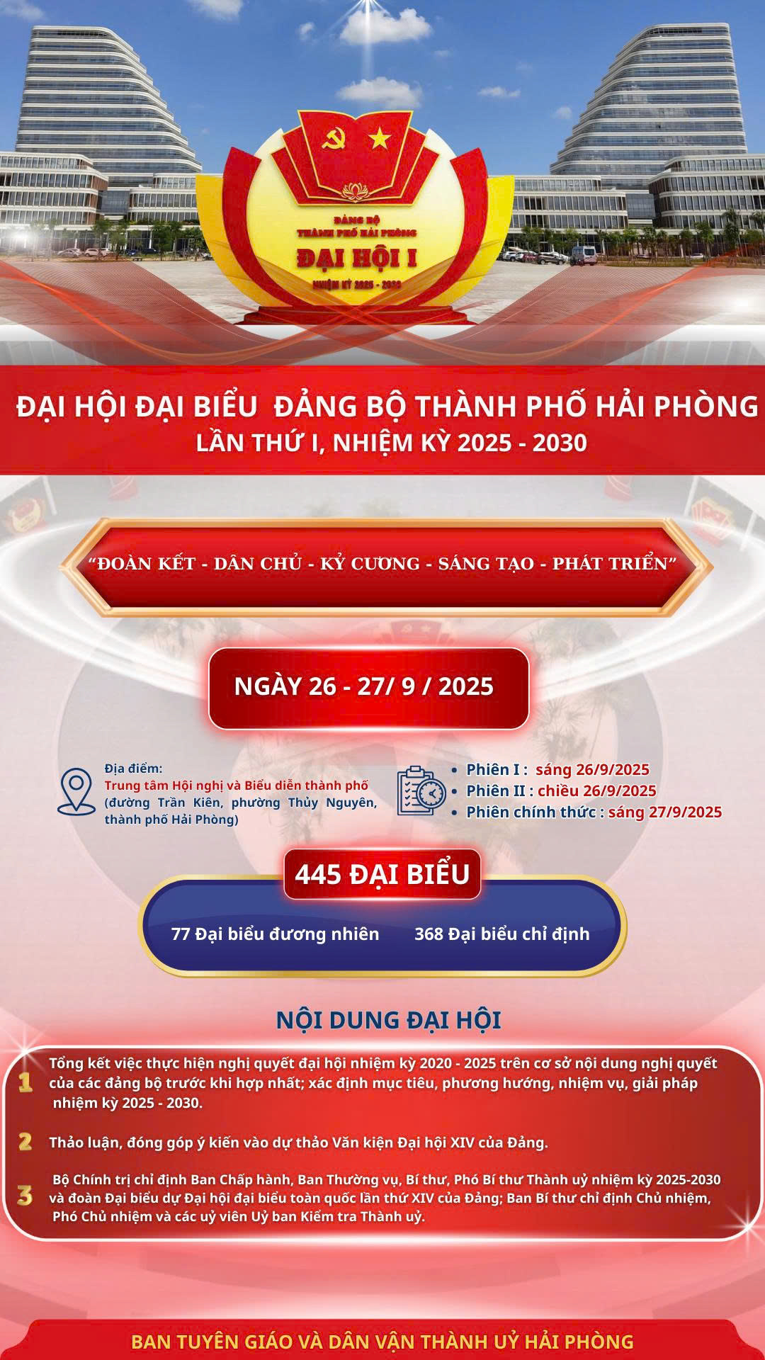 Infographic: Đại hội đại biểu Đảng bộ thành phố Hải Phòng lần thứ I, nhiệm kỳ 2025 - 2030