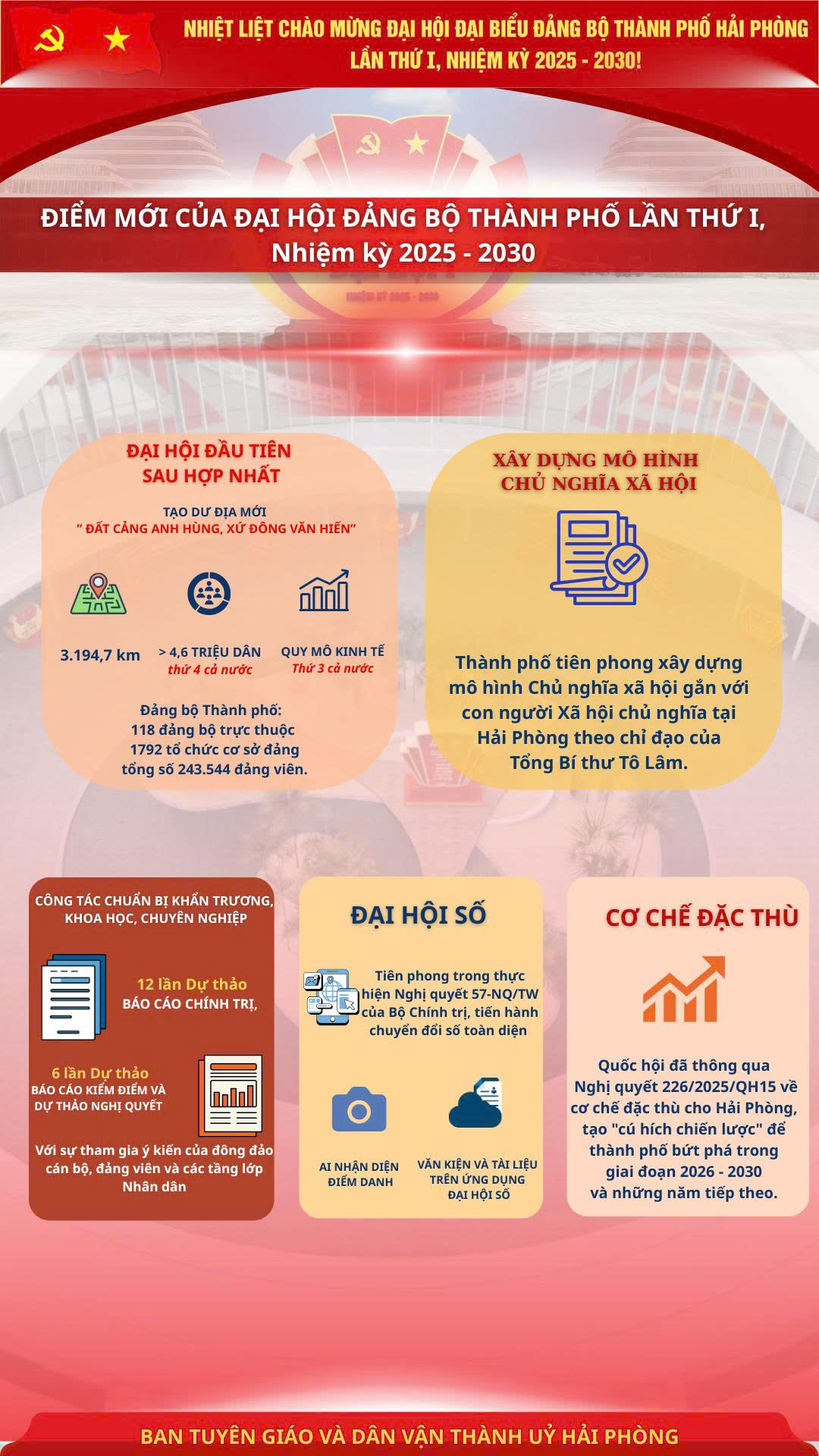 Infographic: Điểm mới của Đại hội Đảng bộ thành phố Hải Phòng lần thứ I, nhiệm kỳ 2025 - 2030