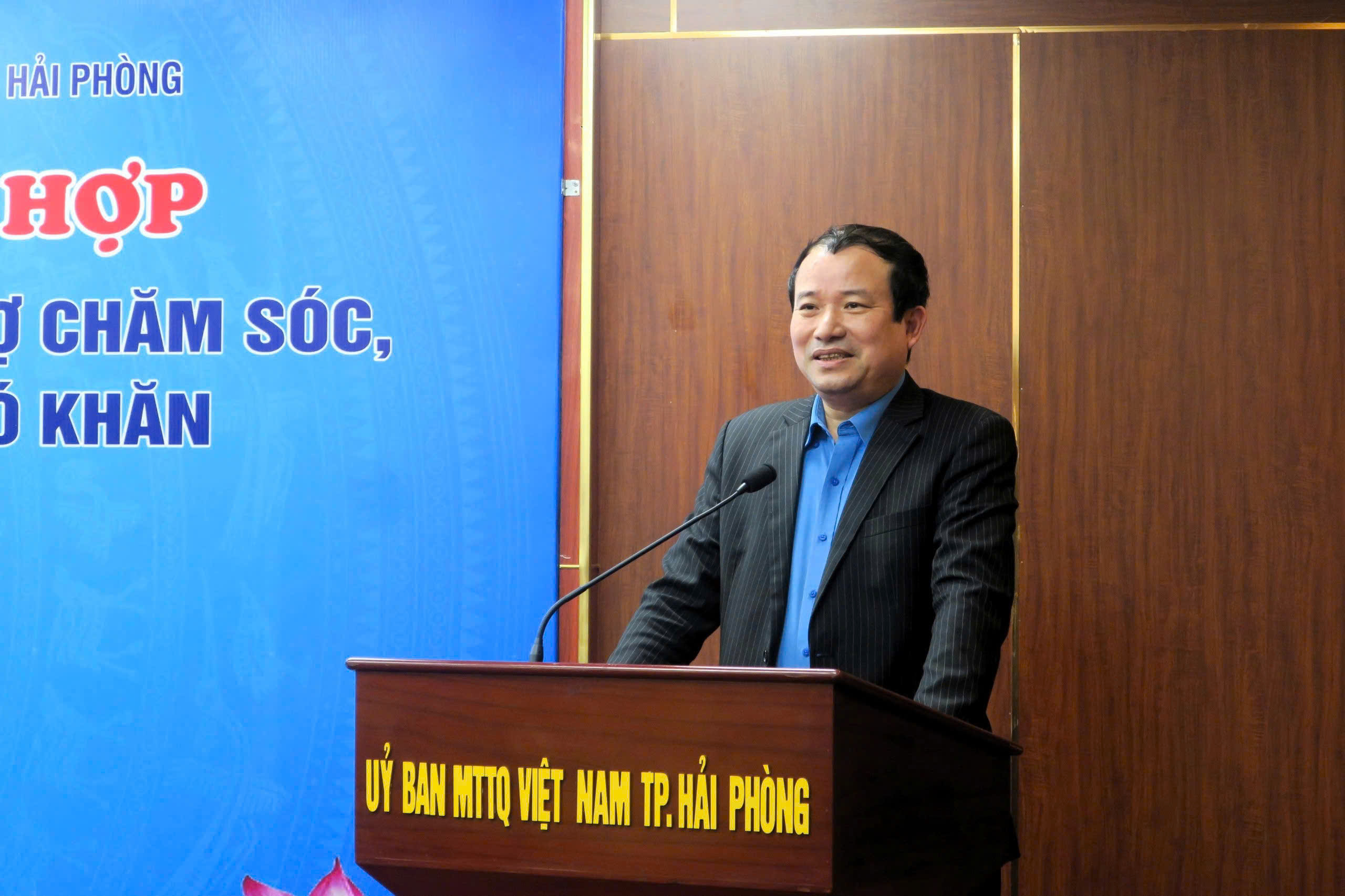 Đồng chí Nguyễn Anh Tuân - Chủ tịch LĐLĐ thành phố phát biểu tại hội nghịChương trình “Cha - Mẹ đỡ đầu” là minh chứng sinh động cho việc thực hiện hiệu quả phương châm “Dân biết, dân bàn, dân làm, dân kiểm tra, dân giám sát, dân thụ hưởng”, đồng thời khẳng định vai trò lãnh đạo, chỉ đạo sát sao của Thành ủy, sự vào cuộc trách nhiệm của Mặt trận Tổ quốc Việt Nam và các tổ chức chính trị - xã hội thành phố trong việc chăm lo đời sống vật chất, tinh thần cho các đối tượng chính sách, trẻ em có hoàn cảnh đặc biệt khó khăn, góp phần củng cố, tăng cường khối đại đoàn kết toàn dân tộc trên địa bàn thành phố Hải Phòng.