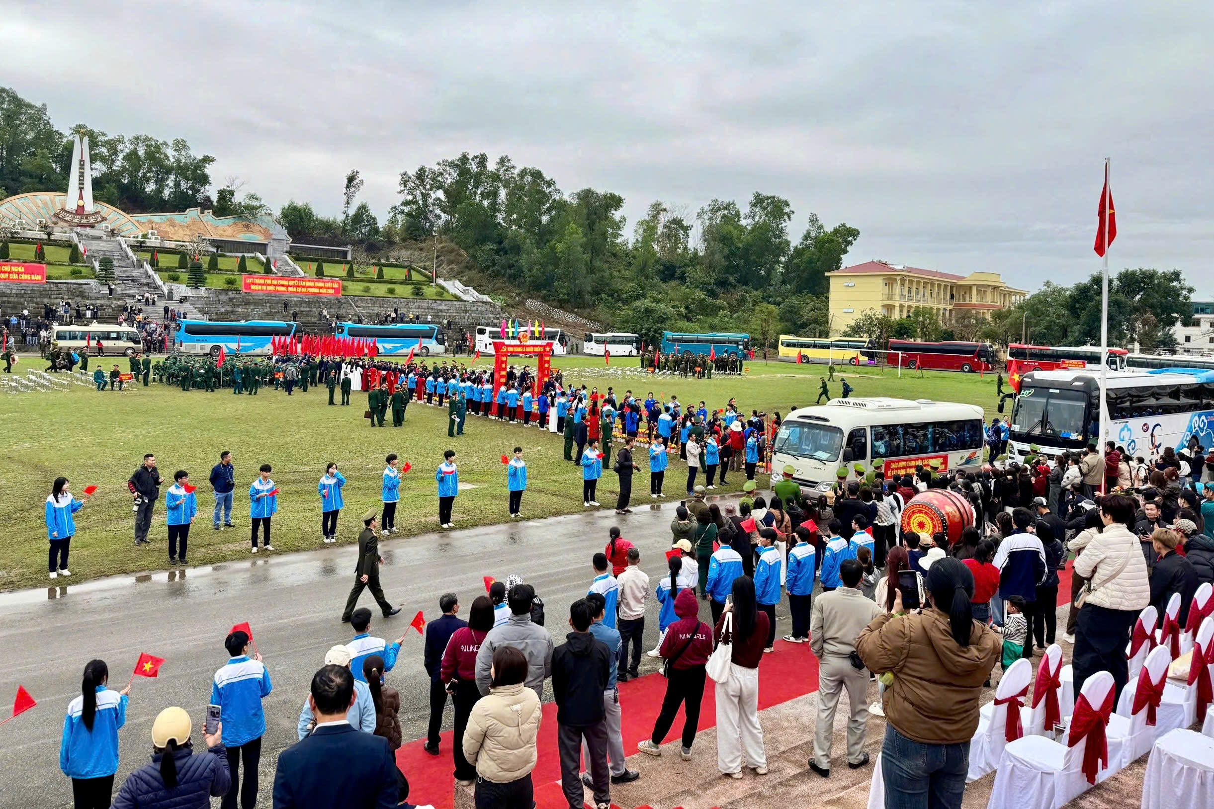 *Tại điểm giao nhận quân số 04 – Sân vận động Thủy Nguyên, 585 thanh niên ưu tú của các phường: Thủy Nguyên, Thiên Hương, Hòa Bình, Nam Triệu, Bạch Đằng, Lưu Kiếm, Lê Ích Mộc và xã Việt Khê đã lên đường nhập ngũ, thực hiện nghĩa vụ quân sự và nghĩa vụ tham gia Công an nhân dân.