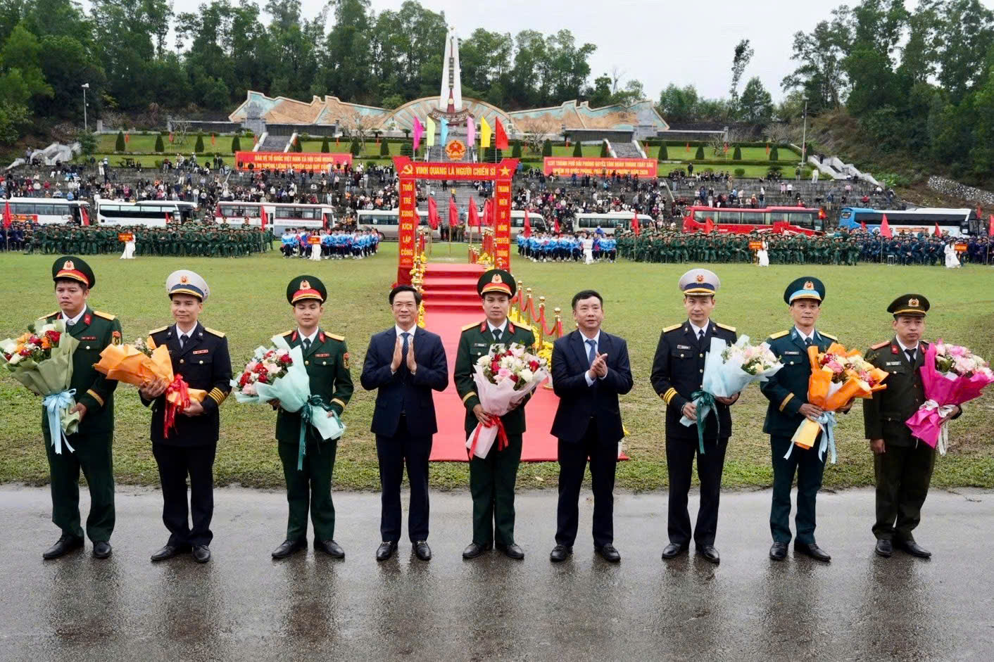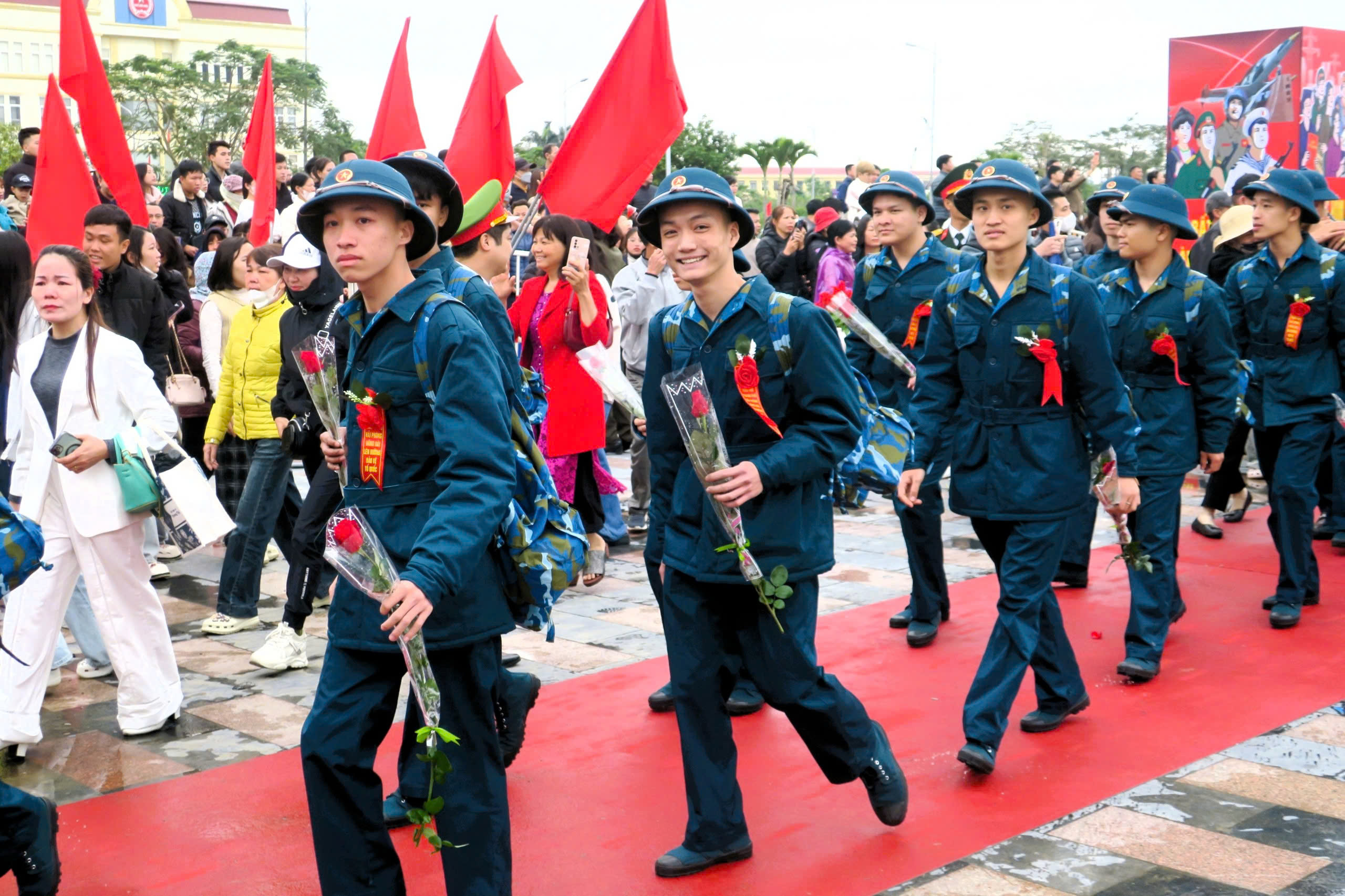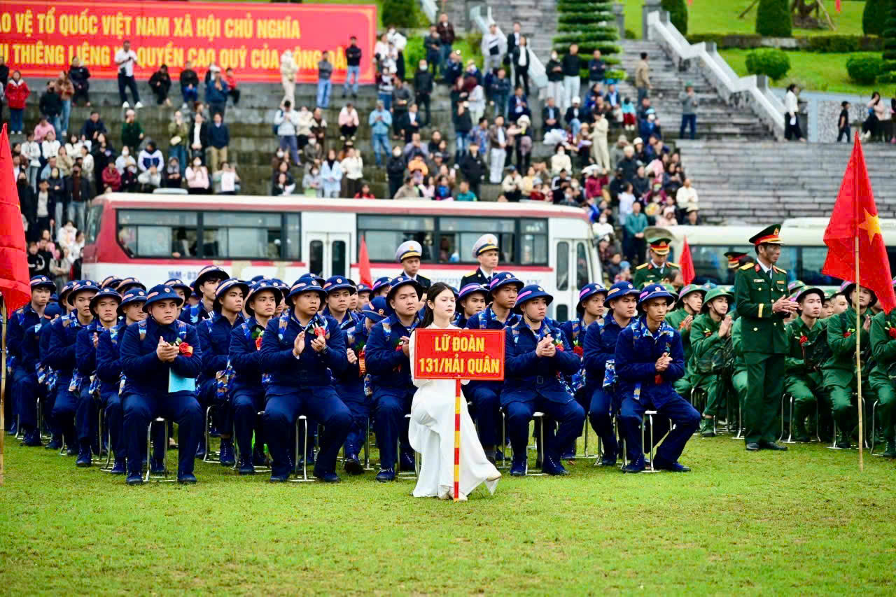 Lãnh đạo thành phố tặng hoa cho các tân binh.Phát biểu tại Lễ giao nhận quân, đồng chí Lê Trí Vũ, Trưởng Ban Tổ chức Thành ủy phát biểu động viên các tân binh phát huy truyền thống cách mạng, tinh thần yêu nước, lên đường làm nhiệm vụ; tích cực học tập, rèn luyện, khắc phục khó khăn, vững vàng ý chí, hoàn thành xuất sắc mọi nhiệm vụ được giao, xứng đáng là người kế tục sự nghiệp của cha anh, tiếp nối truyền thống vẻ vang của Quân đội nhân dân Việt Nam Anh hùng. Cấp ủy và chính quyền sẽ quan tâm, làm tốt công tác hậu phương để các tân binh yên tâm học tập và rèn luyện.