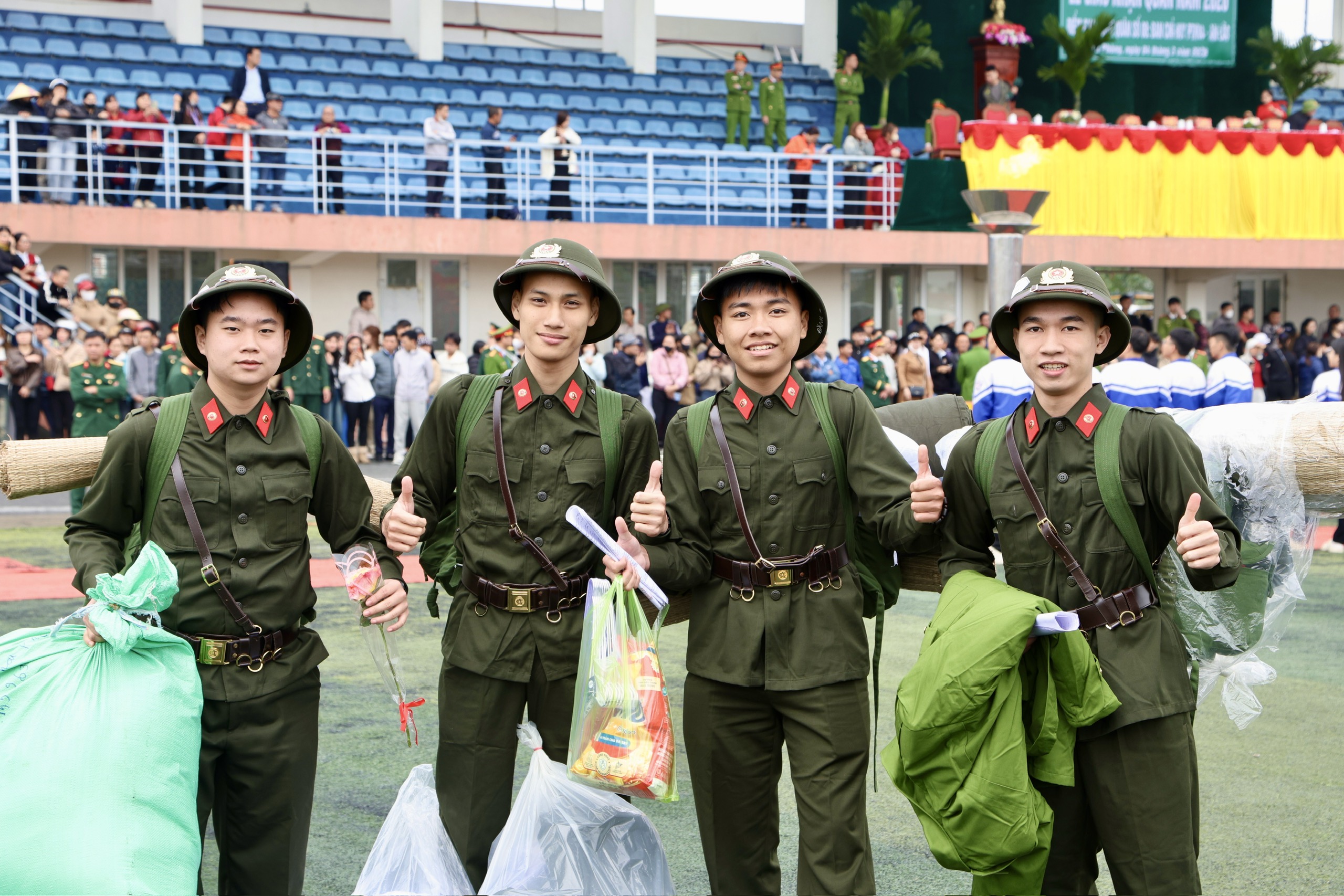 Điểm giao nhận quân số 04 có 585 thanh niên ưu tú lên đường nhập ngũ.