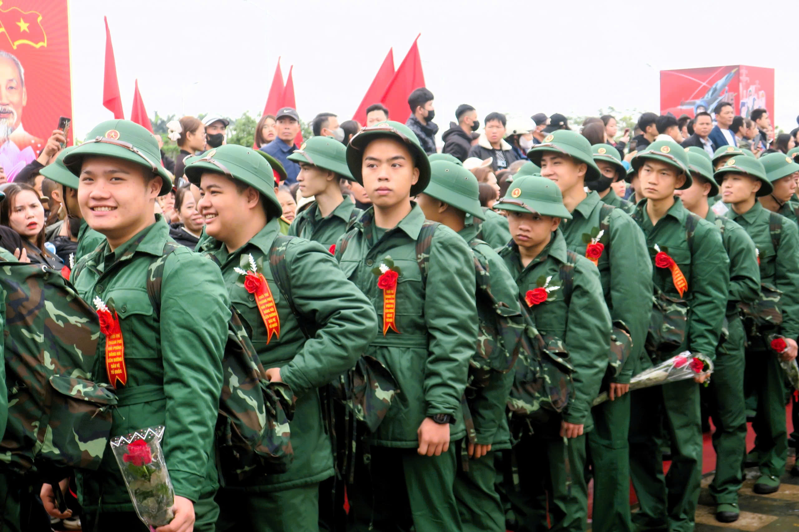 Gương mặt rạng rỡ, ánh mắt quyết tâm của các tân binh tại Lễ giao, nhận quân năm 2026.Năm 2026, thành phố Hải Phòng được giao chỉ tiêu tuyển chọn, gọi 5.100 nam công dân nhập ngũ và thực hiện nghĩa vụ tham gia Công an nhân dân, bàn giao cho 18 đơn vị đầu mối thuộc Bộ Quốc phòng và Quân khu 3. Chất lượng công tác tuyển quân năm nay tiếp tục được nâng lên rõ rệt. Tỷ lệ thanh niên có sức khỏe loại 1, loại 2 đạt 72%; thanh niên trong độ tuổi từ 18 đến 21 chiếm trên 72%. Trình độ học vấn và chuyên môn kỹ thuật của công dân nhập ngũ được cải thiện, trong đó thanh niên tốt nghiệp cao đẳng, đại học chiếm 14,4%.
